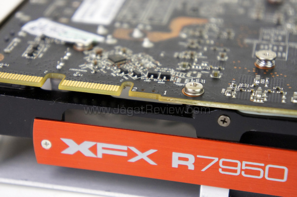 XFX HD 7950 Black Edition OC dilengkapi 2 buah konektor Crossfire sehingga dapat digabungkan dengan 3 buah graphics card lainnya pada konfigurasi multi-GPU.
