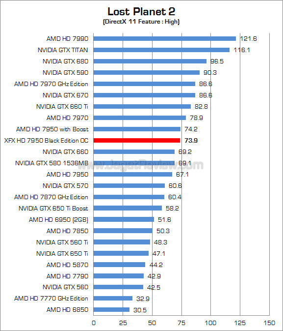 Game bertema superhero ini memperlihatkan XFX HD 7950 Black Edition OC memiliki performa mirip dengan HD 7950 with Boost dimana performa seperti ini unggul sekitar 8% di atas HD 7950 reference.