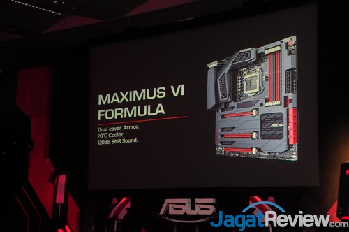 Di akhir acara ROG ini, ASUS memperkenalkan MAXIMUS VI Extreme. Board ini, sehari sebelumnya berhasil meraih kemenangan besar di acara Overclocking yang disponsori Corsair dan Intel. Tak kurang dari 91% kemenangan pada acara tersebut diperoleh dengan board MAXIMUS VI Extreme.