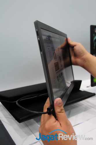Berikutnya, Asus juga menampilkan produk display yang cocok digunakan untuk menemani perangkat mobile, seperti smartphone, tablet, serta laptop. Salah satu produk yang ditampilkan bahkan memiliki input yang tidak biasa ditemui di perangkat display.