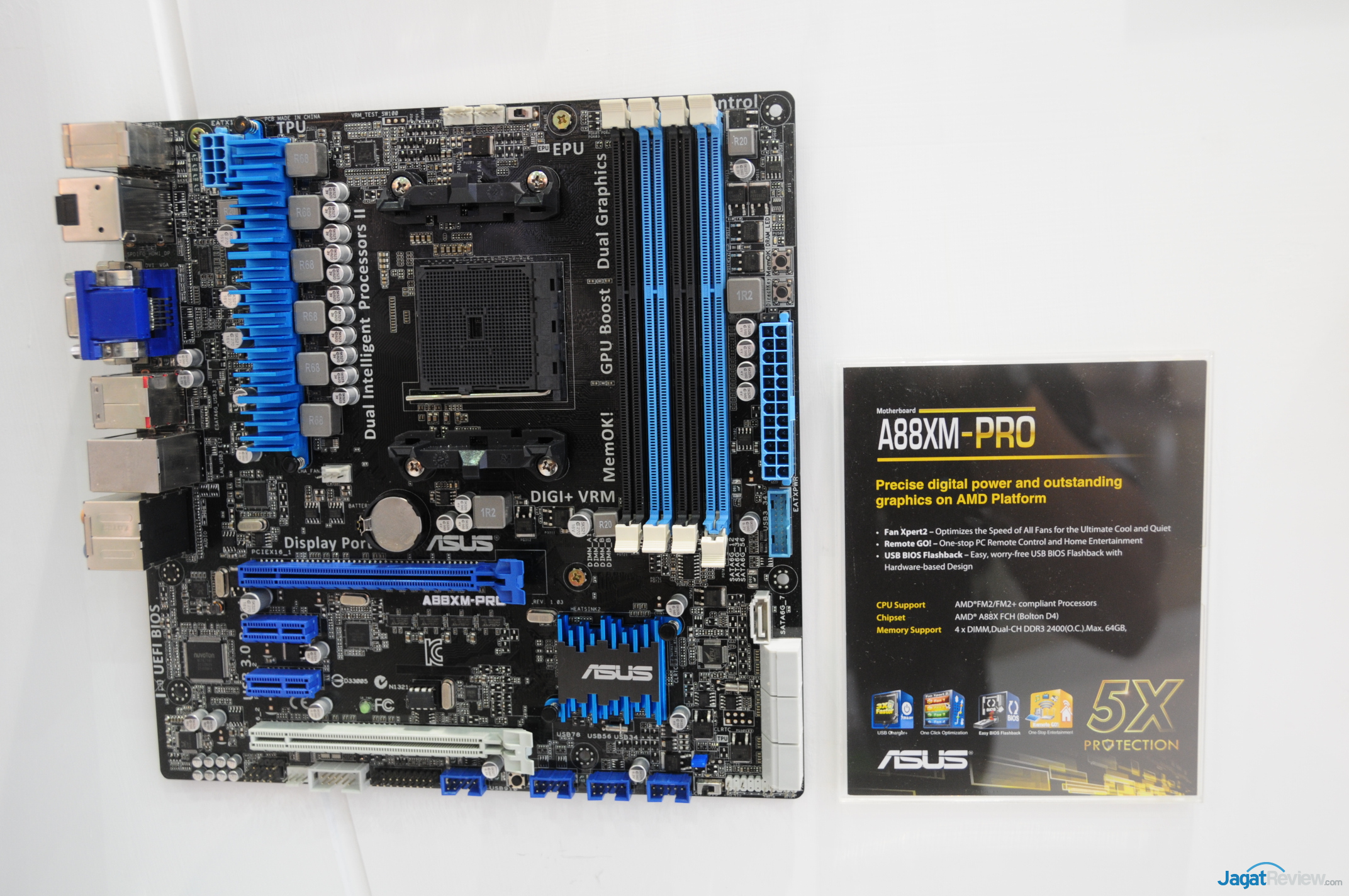 ASUS mempertunjukkan motherboard nya yang menggunakan chipset A88. Chipset ini adalah pengganti chipset A85. Tentunya ini adalah pasangan yang tepat bagi APU baru AMD yang memiliki code name Richland.