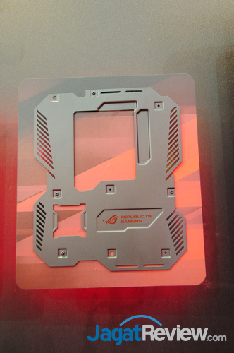 Inilah “perisai” baru yang diusung oleh Maximus VI Formula. Bayangkan Thermal Armour yang diusung seri TUF tetapi terbuat dari bahan logam. Selain memperlancar aliran udara dan melindungi dari debu, bagian belakang dari “perisai” ini memperkuat struktur motherboard agar tidak mudah bengkok karena tekanan dari berbagai komponen diatasnya.