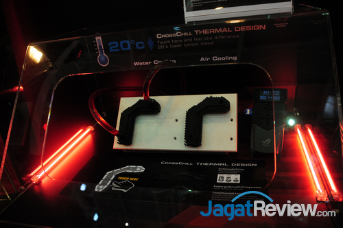 ASUS menyediakan semua demo untuk membandingkan pendingin baru ini dalam keadaan pasif dan ketika menggunakan watercooling.