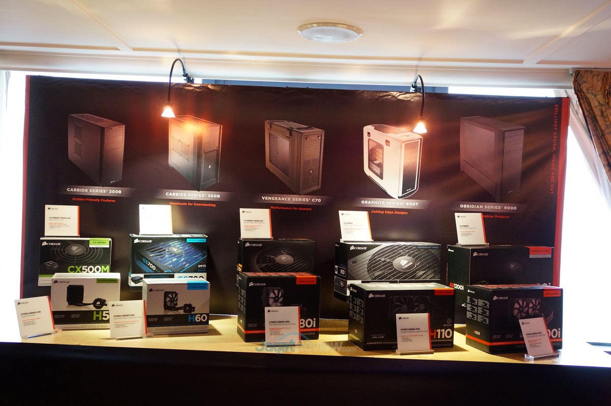 Selain produk RAM, ketika melangkah lebih jauh ke dalam kamar dari Corsair, kami menemukan produk-produk Corsair yang lain yang terpajang dengan rapi di dalam kamar tersebut. Produk-produk tersebut antara lain: