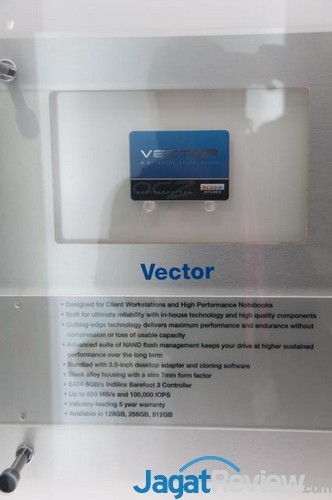 Di salah satu sisi booth-nya, OCZ dengan bangga memamerkan solusi consumer mereka. SSD dari OCZ memang salah satu yang paling populer di pasar Indonesia. Tentunya hal ini disebabkan karena harganya yang cukup bersahabat dengan kantong.
