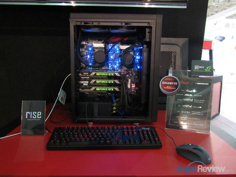 Dua foto di atas menunjukkan produk gaming yang dimiliki oleh Rosewill, antara lain adalah keyboard dan mouse untuk kebutuhan gaming. Mouse yang menjadi produk andalan milik mereka pun juga ditunjukkan dalam area booth Rosewill.
