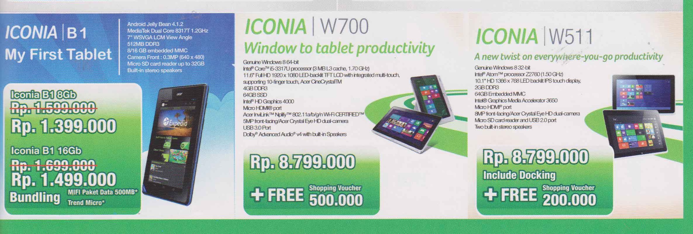 - Iconia W511: Rp 8.799.000,-