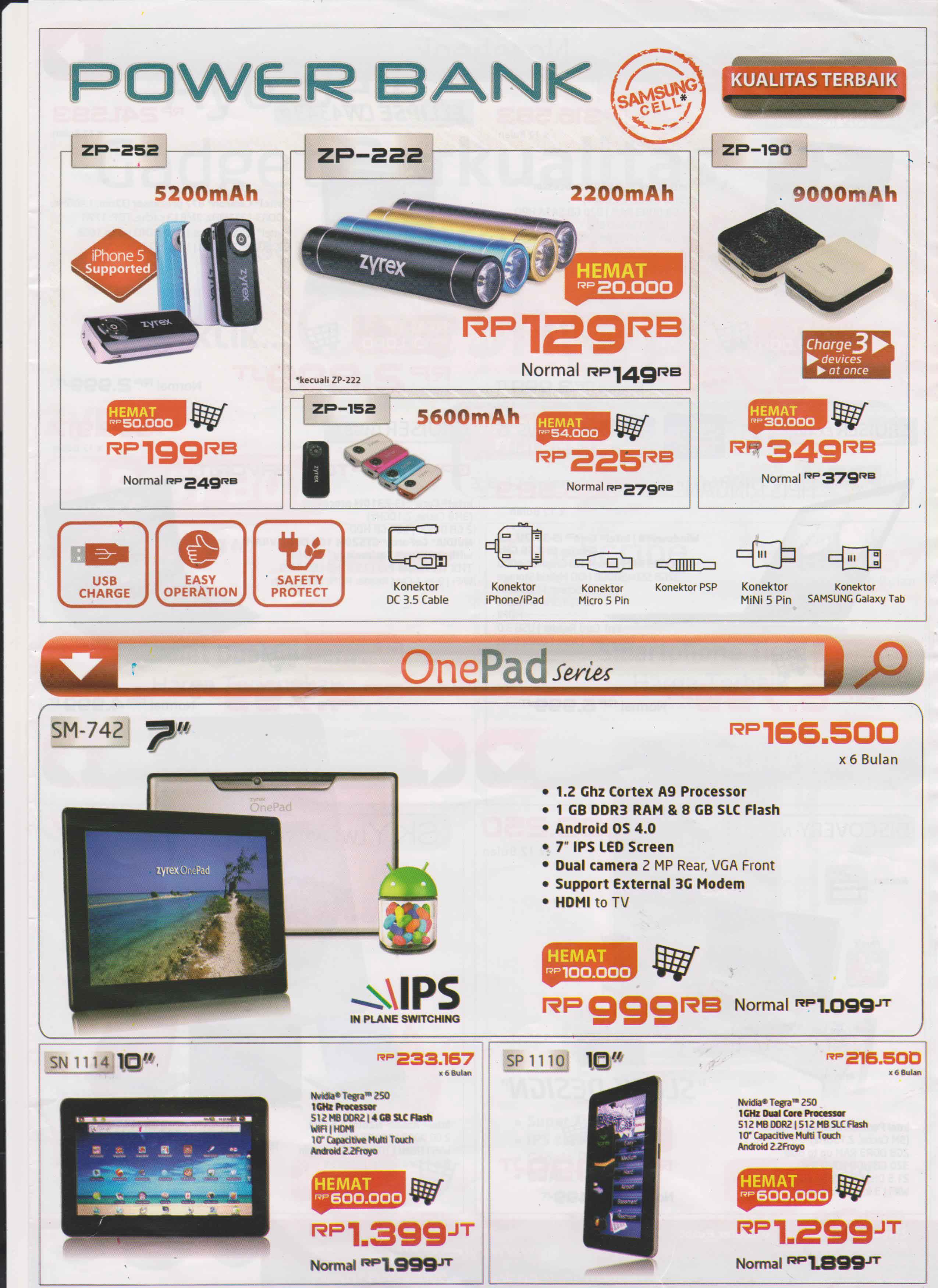 - OnePad SP 1110: Rp 1.899.000,- menjadi Rp 1.299.000,-