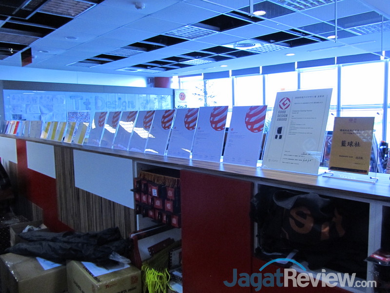 Hasil kreasi dari tim desain Thermaltake tampaknya sudah mendapat pengakuan positif dari berbagai organisasi di dunia. Terbukti, produk-produk Thermaltake banyak mendapatkan penghargaan. Deretan penghargaan tersebut terpajang di salah satu sisi kantor mereka.