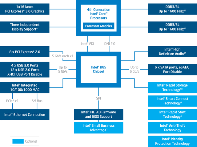 Untuk mengakomodir prosesor Haswell, Intel mengeluarkan lini chipset seri 8 terbaru mereka. Terdapat beberapa perubahan yang dilakukan Intel pada chipset seri 8, di mana beberapa di antaranya adalah jumlah port SATA 6Gbps ditingkatkan menjadi 6 buah, jumlah USB 3.0 port ditingkatkan menjadi 6 buah, dan masih banyak lagi. Di bawah ini kami tampilkan block diagram beberapa varian chipset Intel seri 8 untuk platform desktop.