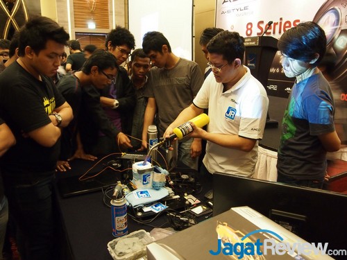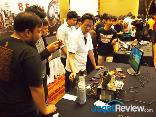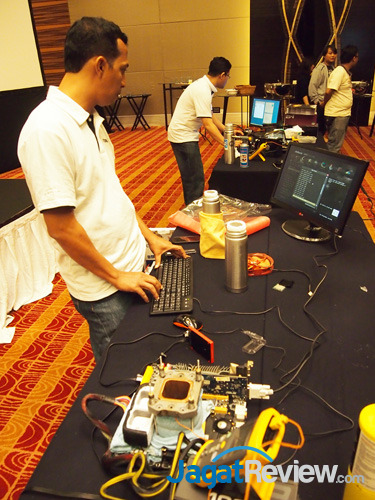 Kali ini juga ASRock mengundang 3(tiga) overclocker terbaik Indonesia untuk menemani Nick Shih, overclocker in-house dari ASRock, dalam memperlihatkan kemampuan motherboard ASRock seri OC Formula, mereka adalah Hazzan, Ekky “jengkol’, dan salah satu perwakilan dari JagatReview Overclocking Team : Alva Jonathan a.k.a Lucky_n00b.