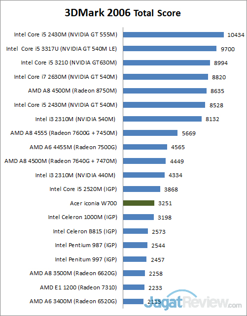 Ternyata, perpaduan prosesor Intel Core i5 3337U dengan graphics on prosesor Intel HD4000 cukup memberikan kinerja yang tinggi. Pada benchmark menggunakan 3DMark 2006, angka yang didapatkan melebihi amgka 3000 yang berarti perangkat tablet ini cukup dapat diandalkan untuk bermain beberapa game 3D yang tepat pada settingan dan resolusi tertentu.
