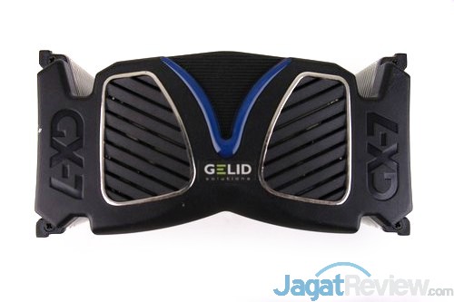 Mari berkenalan dengan Gelid GX-7! Heatsink ini memiliki bentuk dasar yang tidak berbeda dengan heatsink berheatpipe dengan bentuk single tower yang lain. Hanya saja, Gelid mendesain fin dari heatsink ini untuk memiliki bentuk yang agak berlekuk di kedua sisinya.