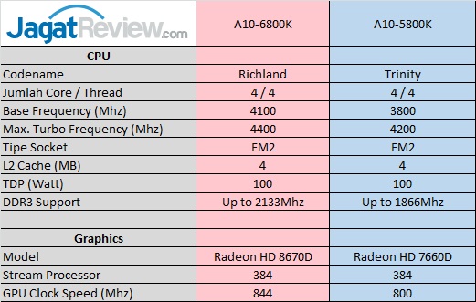 - Prosesor : AMD APU A10-6800k ‘Richland’ & AMD APU A10-5800K ‘Trinity’
