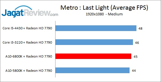 Kami katakan di halaman pertama, tidak jarang ada kejadian dimana ada pengguna yang membeli AMD APU, namun beberapa bulan kedepan membeli kartu grafis diskrit kelas mainstream untuk menambah performa gamingnya. Tentu saja, dalam skenario game-game terbaru saat berjalan di resolusi 1080p, limitasi utama akan terjadi pada GPU yang digunakan(GPU-bound), namun performa CPU yang mumpuni, meski tidak terlalu besar pengaruhnya, masih sedikit menentukan framerate dari game yang dimainkan. Bagaimana performa prosesor dari A10-6800K ketika dipasangkan dengan kartu grafis mainstream MSI Radeon HD 7790 1GB?