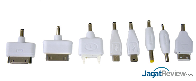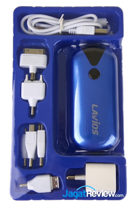Terdapat juga2 buah kabel USB yang berbeda ukuran panjang kabelnya dengan bagian ujung dapat diganti sesuai dengan konektor yang diinginkan. Dalam paket yang sama juga disediakan 8 jenis konektor yang dapat digunakan untuk mengisi ulang berbagai device seperti ponsel, Blackberry, Samsung, iPhone, Nokia, PSP, GPS, kamera, dan perangkat lainnya yang memiliki tegangan input DC5V. Selain itu, Lavios seri ini juga menyediakan charger USB yang dapat digunakan untuk mengisi ulang baterai lewat colokan listrik rumah biasa, sehingga akan sangat memudahkan penggunanya untuk mengisi ulang kembali power bank ini.