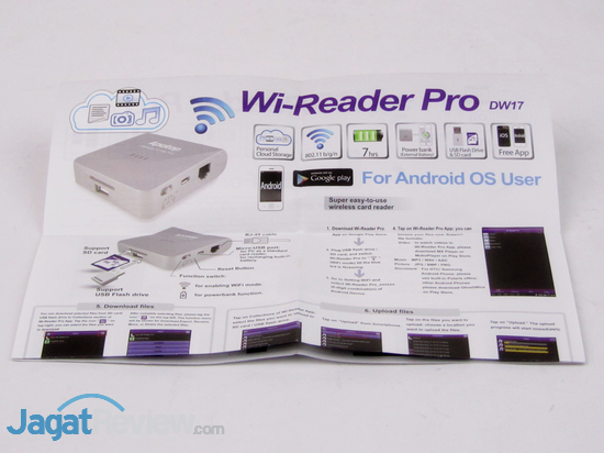 Untuk paket penjualan, Apotop Wi-Reader Pro ini datang dengan paket penjualan yang bisa dikatakan minimal. Selain unit Wi-Reader Pro itu sendiri, dalam kemasan paket penjualan kami hanya menemukan sebuah kabel USB to Micro USB dan sebuah quick start guide untuk pengguna perangkat berbasis iOS dan Android.