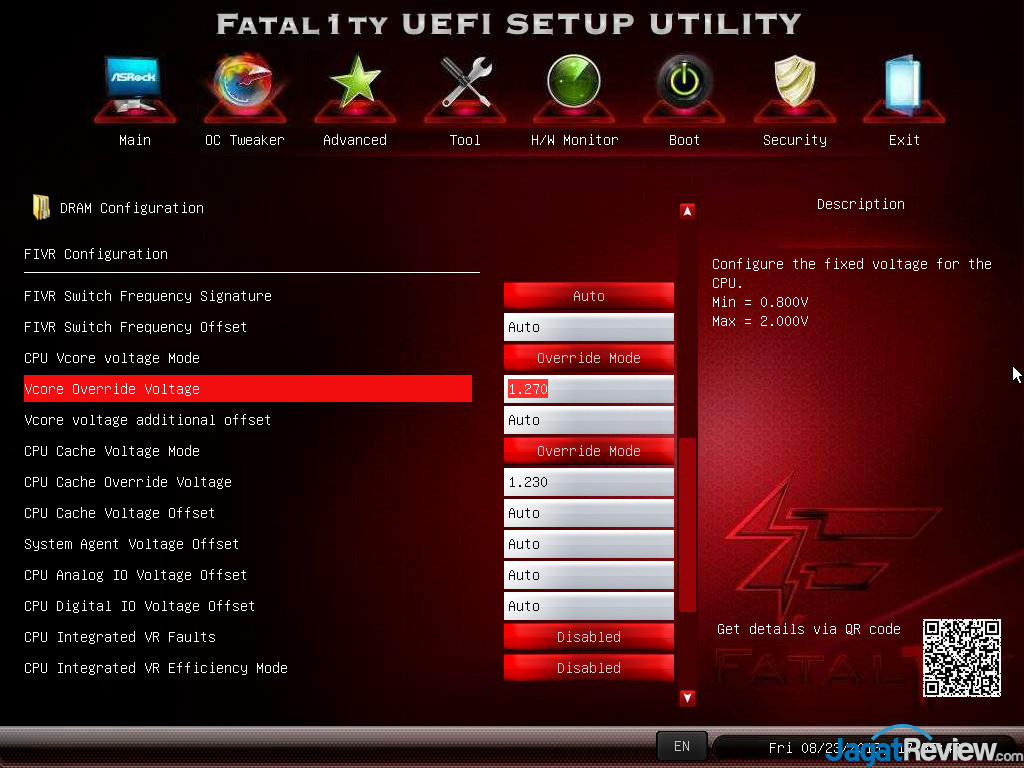 - CPU Cache(Ring) Override VOltage : 1.23V