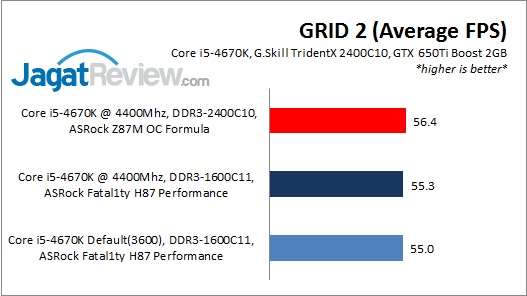 Dari semua game yang kami uji, nampak bahwa Crysis 3 dan GRID 2 sudah terlalu CPU-Limited sehingga peningkatan FPS berkat prosesor lebih kencang akan tipis sekali. Hanya di Starcraft II peningkatan performa akibat CPU Clock masih berlaku.