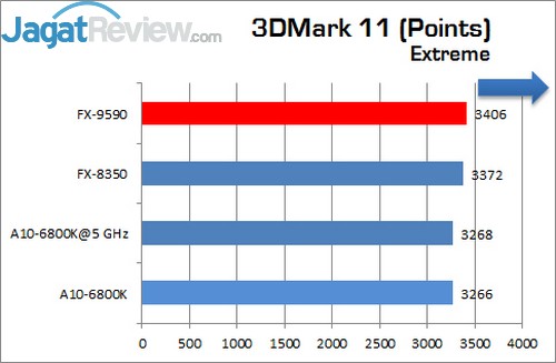 Pengujian pada mode extreme mampu menempatkan prosesor ini pada posisi pertama. Tetapi jika diperhatikan perbedaan antara dia dan ketiga pembanding terlihat jauh lebih tipis.
