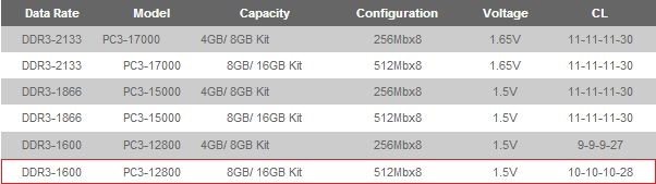 - Timing (SPD): 11-11-11-28 2T (CAS-TRCD-TRP-TRAS-CMD Rate)