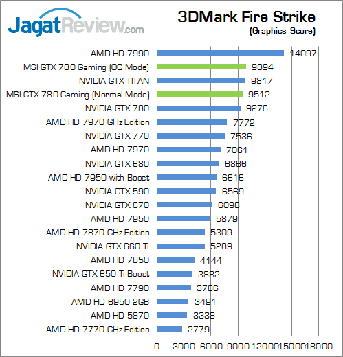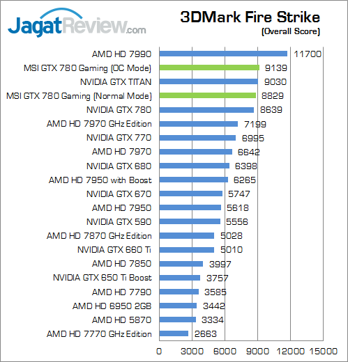 Pada benchmark terbaru dari Futuremark ini MSI GeForce GTX 780 Twin Frozr Gaming OC unggul 236 poin pada Gaming Mode dan 618 poin pada OC Mode atau lebih baik sekitar 2.5%% pada Gaming Mode dan 6.7% pada OC Mode dibandingkan dengan GeForce GTX 780 reference.