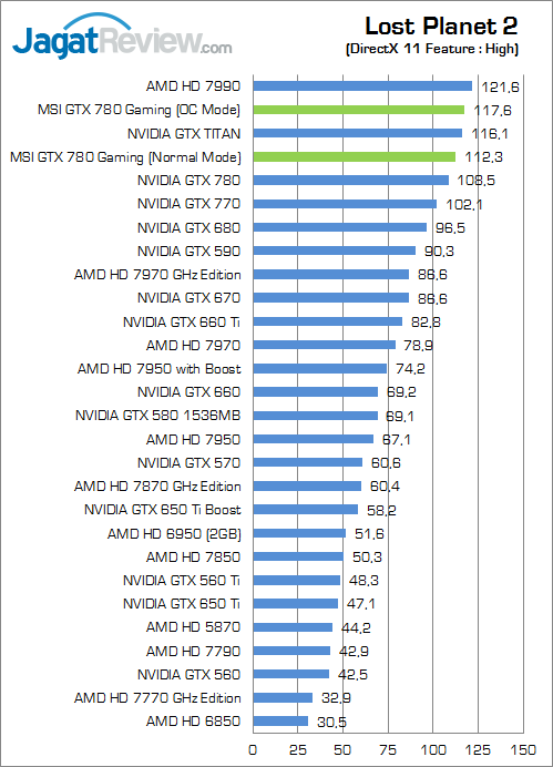 Game rally ini mendapatkan frame rate 8.3% lebih tinggi pada Gaming Mode dan 8.7% lebih tinggi pada OC Mode saat dijalankan pada MSI GeForce GTX 780 Twin Frozr Gaming OC dibandingkan GeForce GTX 780 reference.