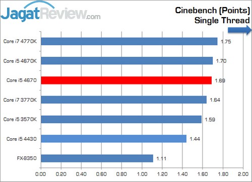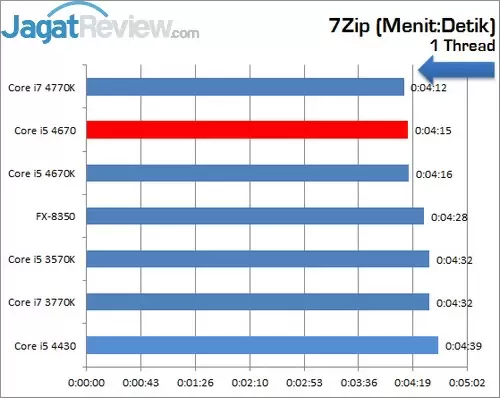 Performa single thread dari Core i5 4670K menempel tipis dengan saudara tuanya. Dengan tertinggal kurang dari 1%, bisa dikatakan bahwa performa antara kedua prosesor hampir tak terasa.