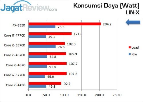 Pengujian konsumsi daya yang kami jalankan menemukan hal yang cukup menarik. Dengan performa yang kurang lebih sama, ternyata Core i5 4670 lebih boros daripada 4670K. Keduanya terpisah dengan jarak yang cukup “besar” yaitu 1.80 Watt pada saat Load.