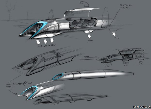 Pengusaha asal Amerika Serikat, Elon Musk menciptakan sebuah konsep model transportasi umum berbentuk kapsul yang mampu melesat dengan kecepatan hampir mendekati suara. Konsep tersebut diberi nama Hyperloop.