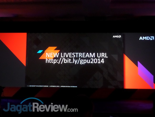 2:30 WIB: Permasalahan streaming tampaknya mulai bisa diatasi. Pihak AMD memberikan link baru untuk streaming acara GPU14 ini. Terkait masalah streaming, pihak AMD mengakui bahwa mereka cukup terkejut dengan banyaknya pecinta dunia komputer yang antusias dengan acara ini hingga menyebabkan server yang digunakan untuk streaming kekurangan tenaga.