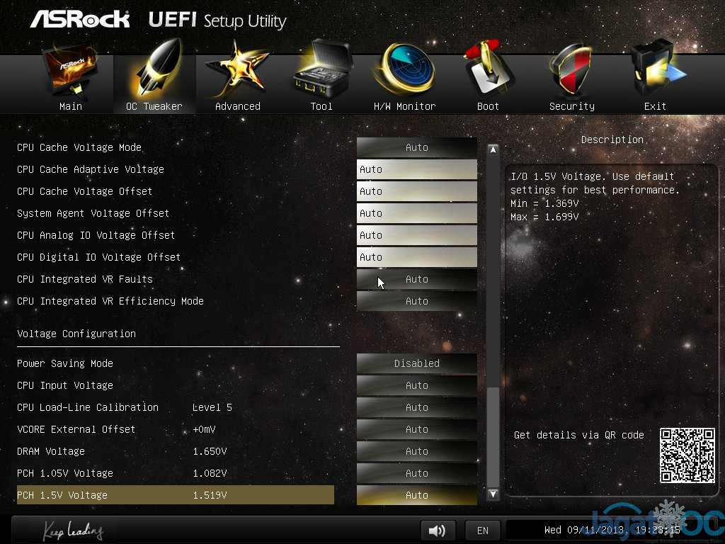 - CPU Voltage 1.4V, CPU Cache Voltage 1.4V