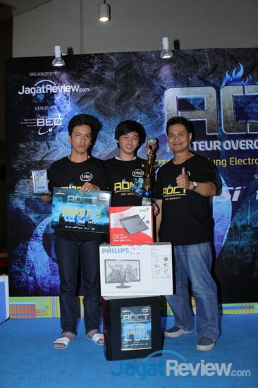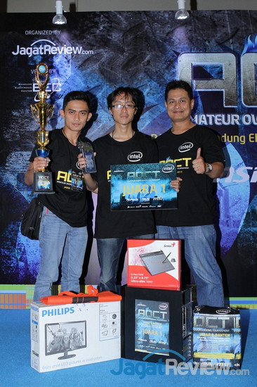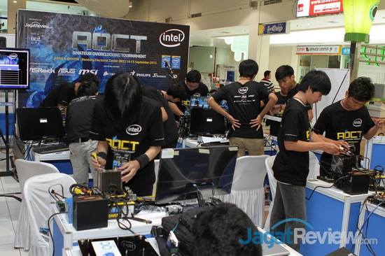 Turnamen overclocking khusus pemula, AOCT 2013, untuk wilayah Jawa Barat dan Banten akhirnya telah selesai digelar. Setelah menyelesaikan tantangan 3 benchmark yang dijalankan dengan prosesor Core i7-4770K dengan 3 motherboard Z87 berbeda dari 3 brand ternama, ASROCK, ASUS, dan MSI, terpilihlah 3 tim yang menjadi 3 terbaik di turnamen kali ini. Namun, sebelum membahas ketiga tim tersebut, kami akan terlebih dahulu membahas tantangan apa yang harus dihadapi peserta turnamen yang digelar di BEC, Bandung, atas dukungan dari Intel, 3 brand motherboard ternama yang telah kami sebut di atas, Corsair, Seasonic, Western Digital, Genius, dan Philips ini.