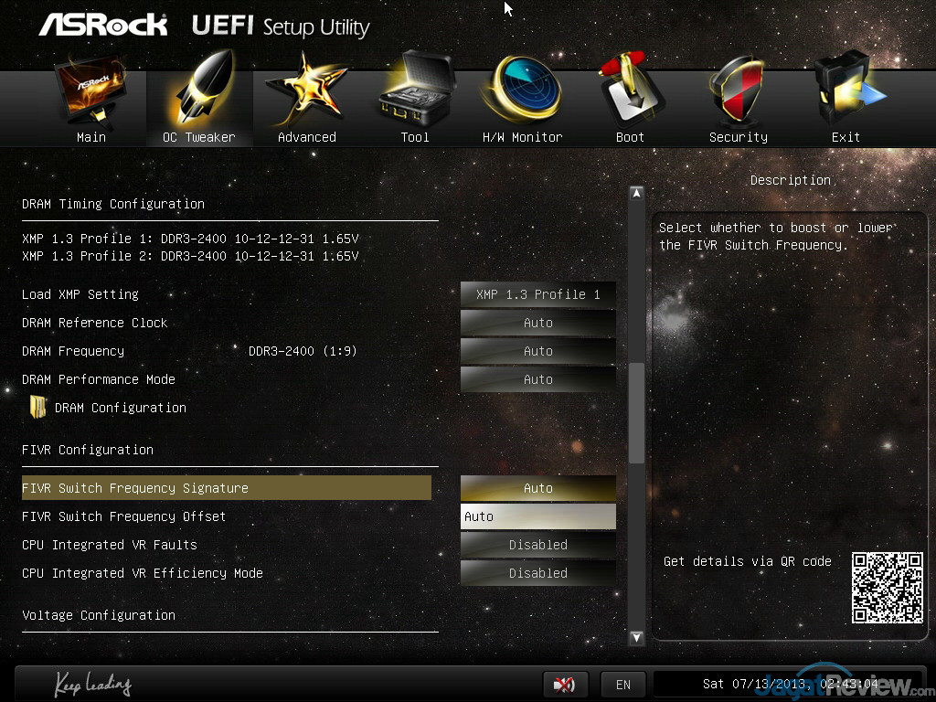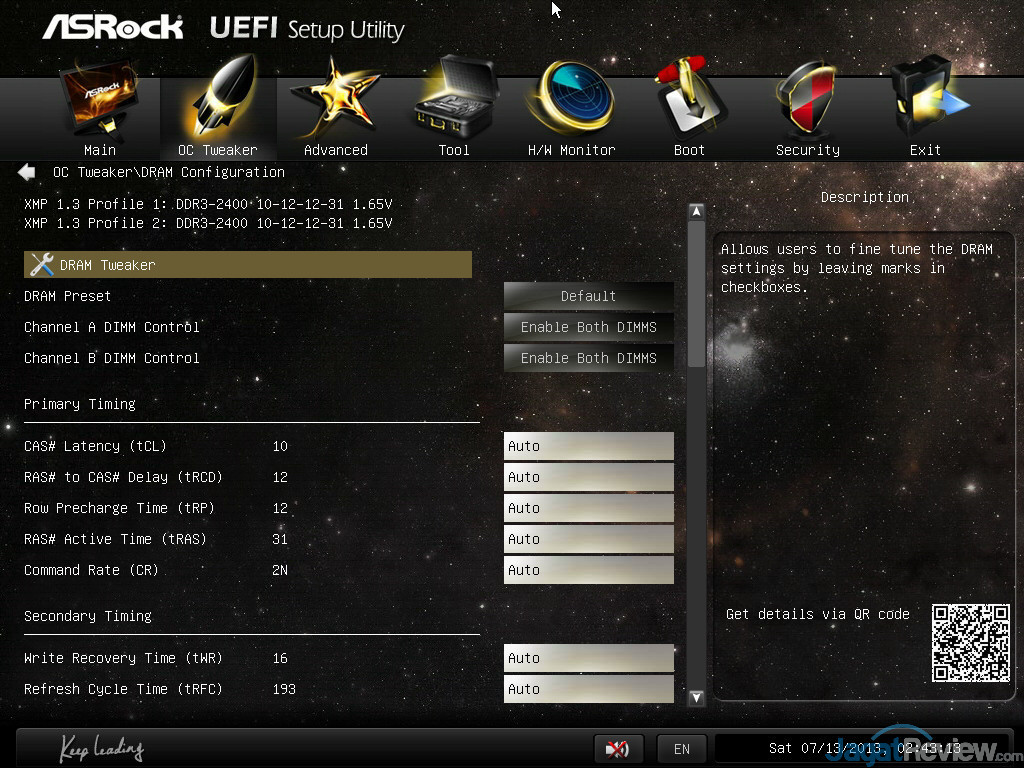 - OC: Kami me-load preset ‘Turbo 4.4Ghz’ Pada BIOS, lalu menyalakan XMP Profile 1 (DDR3-2400 10-12-12-31). Semua setting lainnya AUTO berdasarkan profile yang kami gunakan.