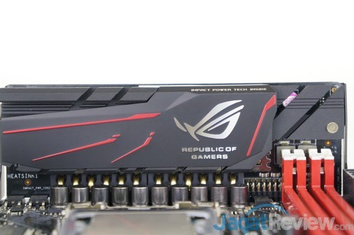 Melanjutkan ke bagian desain, kami cukup kagum dengan keputusan ASUS untuk memasang sebuah VRM Module yang dikoneksikan secara vertikal di bagian motherboard. Hal ini tentunya mengatasi limitasi tempat yang ada di mobo mITX. Modul regulator daya ini dilengkapi dengan komponen kualitas tinggi yang bahkan kuat untuk diajak berlari saat melakukan Extreme-Overclocking! Sebagai catatan ekstra, walau didinginkan dengan sebuah heatsink, modul VRM ini terasa agak hangat saat beroperasi. Kami menyarankan anda untuk memberi sedikit airflow ke bagian VRM ini untuk menjaga suhunya.