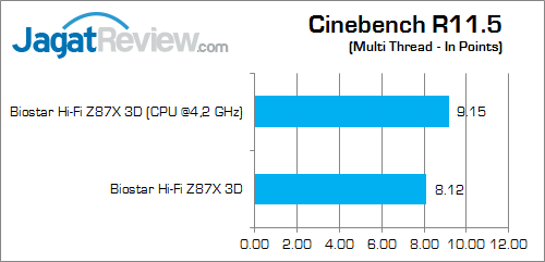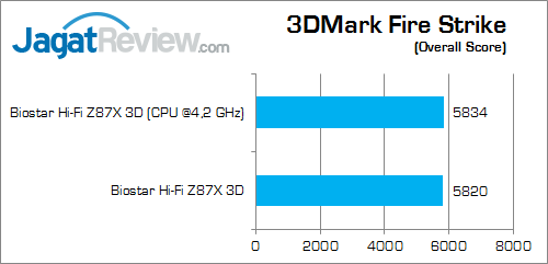 Pengujian Core i7 4770K pada Biostar Hi-Fi Z87X 3D dilakukan pada dua kondisi yaitu kondisi default dan di-overclock. Kondisi overclock di dapat dengan menaikkan nilai multiplier prosesor hingga batas maksimal sistem tetap beroperasi dengan normal tanpa merubah nilai voltase default.