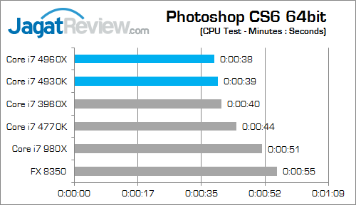 Aplikasi pengolah gambar populer ini ternyata mempertontonkan tipisnya perbedaan performa di antara Core i7 4960X, Core i7 4930K, dan Core i7 3960X.