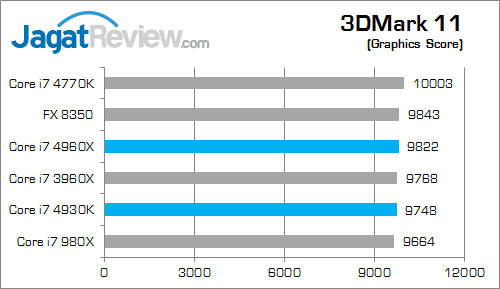 Core i7 4960X terlihat memiliki keunggulan performa sekitar 3% dibandingkan Core i7 3960X. Sedangkan Core i7 4930K terlihat hanya tertinggal sekitar 4% saja di belakang Core i7 4960X.