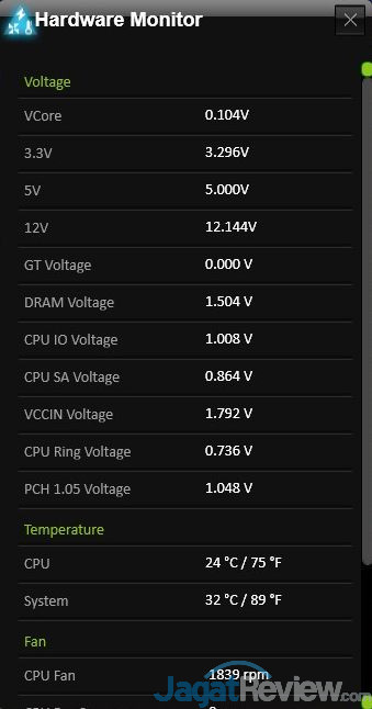 Hardware monitoring akan memberikan report mengenai beberapa variabel yang sedang berjalan di sistem Anda (suhu CPU dan beberapa voltase lain), dan juga memberikan Anda kemudahan untuk mengatur kecepatan berbagai fan yang terpasang pada motherboard. Perlu diingat, bahwa metoda kontrol fan ini hanya bisa berjalan bagi fan yang menggunakan tipe kontrol PWM. Sedangkan, Board Explorer akan memberi tahu Anda akan berbagai peripheral yang terpasang di sistem Anda.