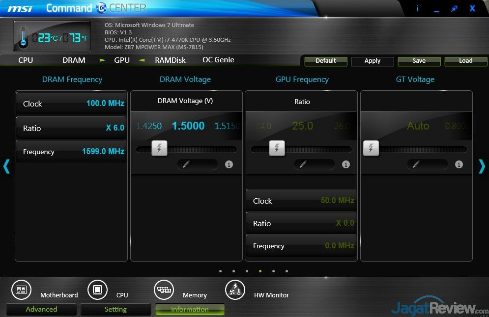 Seperti yang bisa anda lihat diatas, MSI Command Center memberikan berbagai macam fungsi pengaturan dan juga monitoring bagi sistem anda. Terinstall bersama Command Center, MSI pun memberikan sebuah software RAMDisk yang bisa anda gunakan.