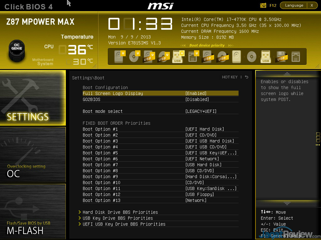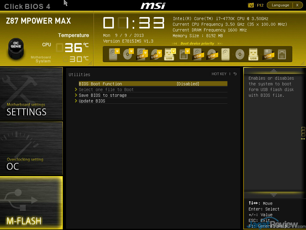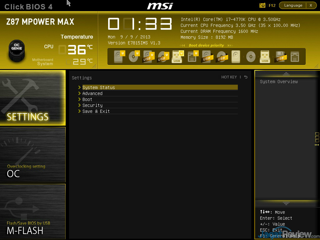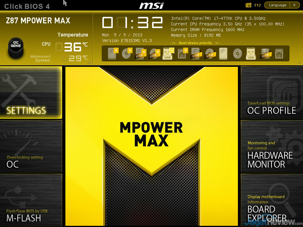MSI Z87 MPOWER MAX dilengkapi dengan ClickBIOS 4 yang merupakan perbaikan dari ClickBIOS 2 yang terdahulu. Anda bisa melihat berbagai tampilan BIOSnya pada gambar dibawah ini: