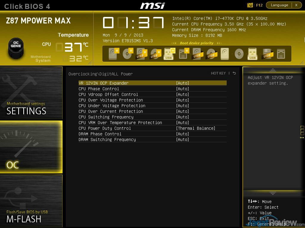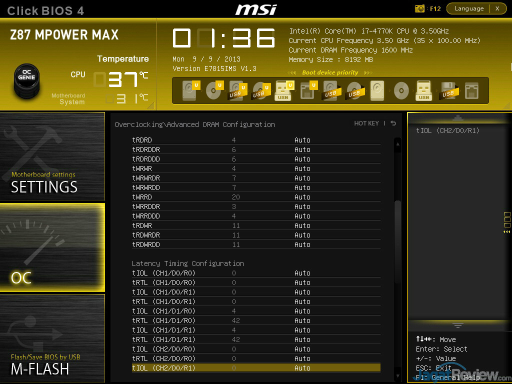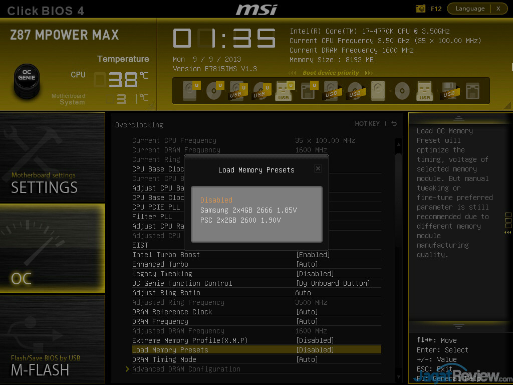 Seperti yang ditemukan pada MPOWER terdahulu, BIOS dari Z87 MPOWER MAX memberikan opsi tuning yang lengkap, cukup bagi semua tipe pengguna untuk memaksimalkan sistemnya. MSI pun terlihat memberi 2(dua) buah DRAM Profile spesifik untuk chip RAM tertentu yang sering digunakan para overclocker.