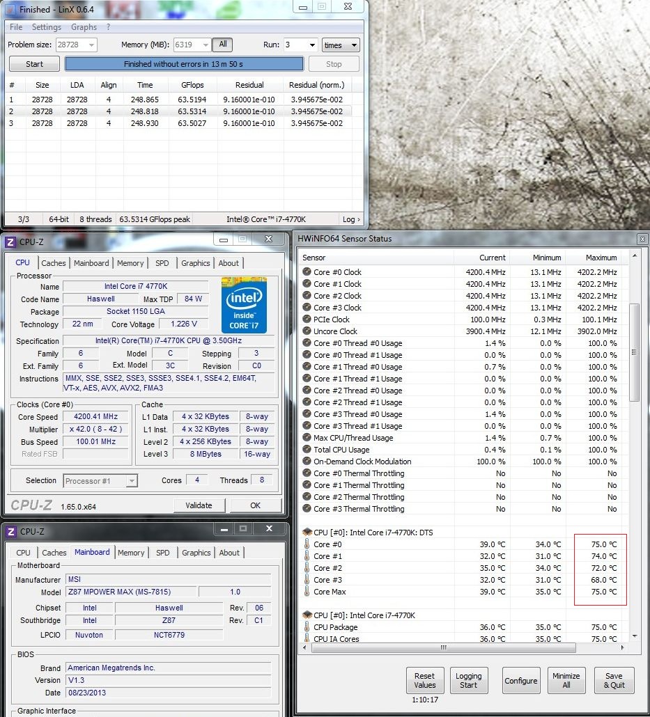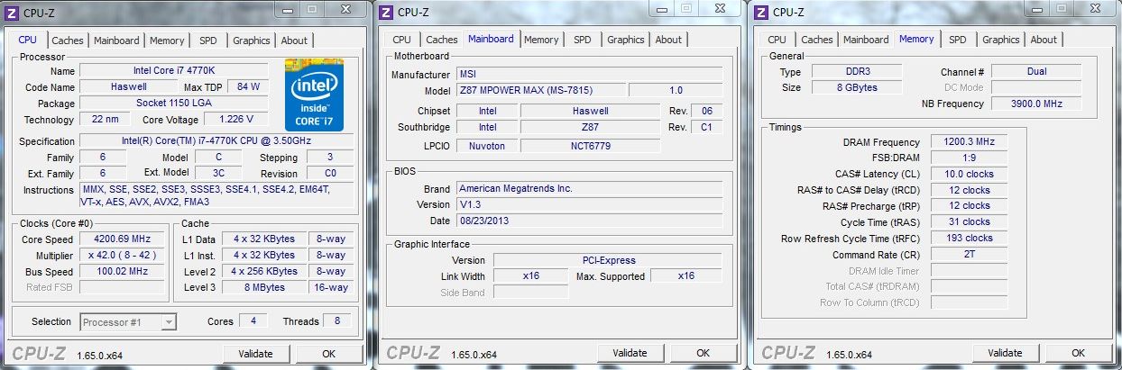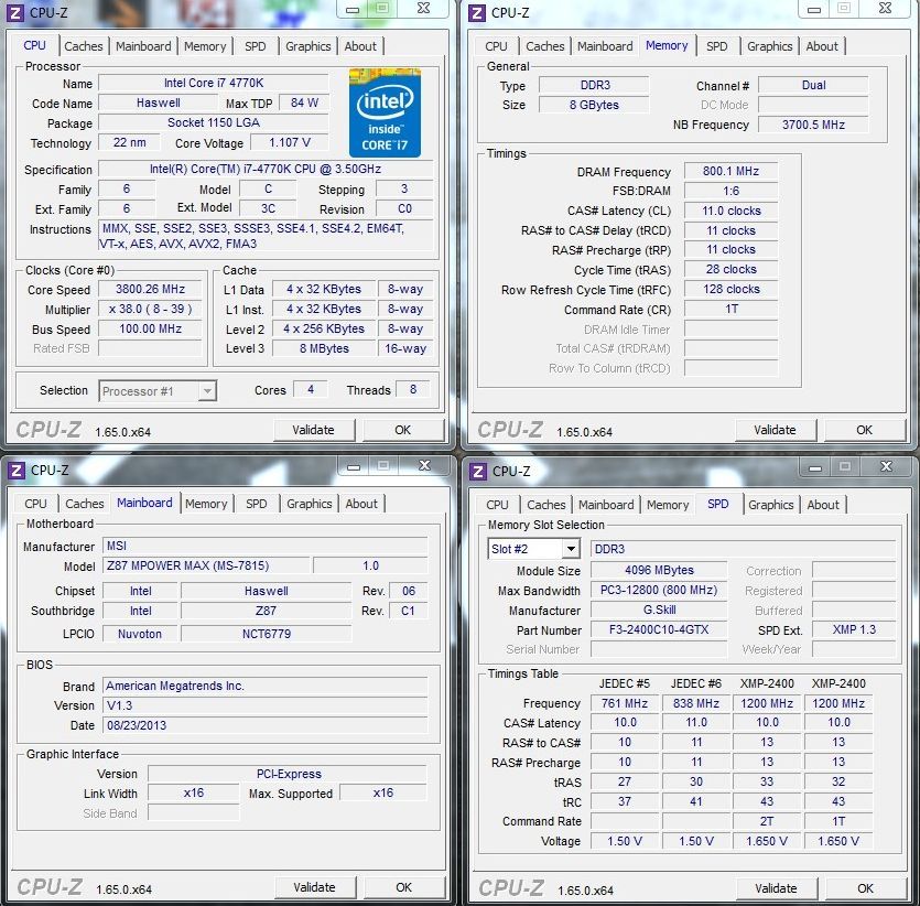 - Motherboard: MSI Z87 MPOWER MAX, BIOS V1.3