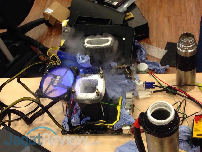 09:00 WIB: 40 menit menjelang turnamen dimulai, beberapa peserta sudah terlihat selesai memasang LN2 pot (bong) yang akan menjadi senjata mereka mendinginkan CPU sepanjang turnamen ini.