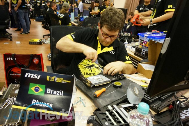 12:45 WIB: Lewat dari 1 jam sesi kedua ini berjalan, overclocker di arena tampak sibuk dengan aktivitasnya masing-masing, mulai dari mengatur berbagai opsi di BIOS hingga melakukan set up ulang pada sistem mereka.