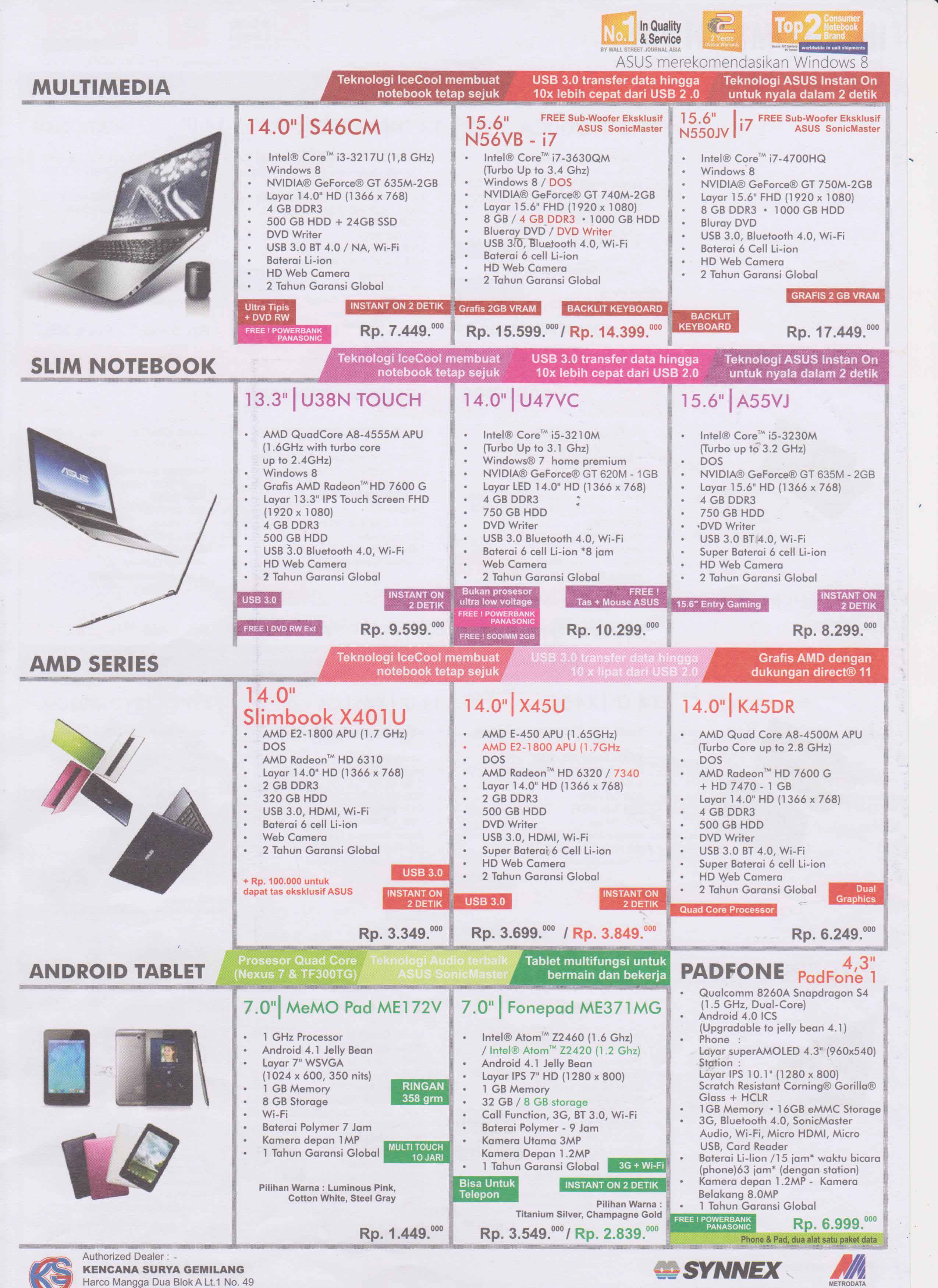 - VivoBook S300CA 13.3″ Intel Core i3-3217U Rp 6.849.000