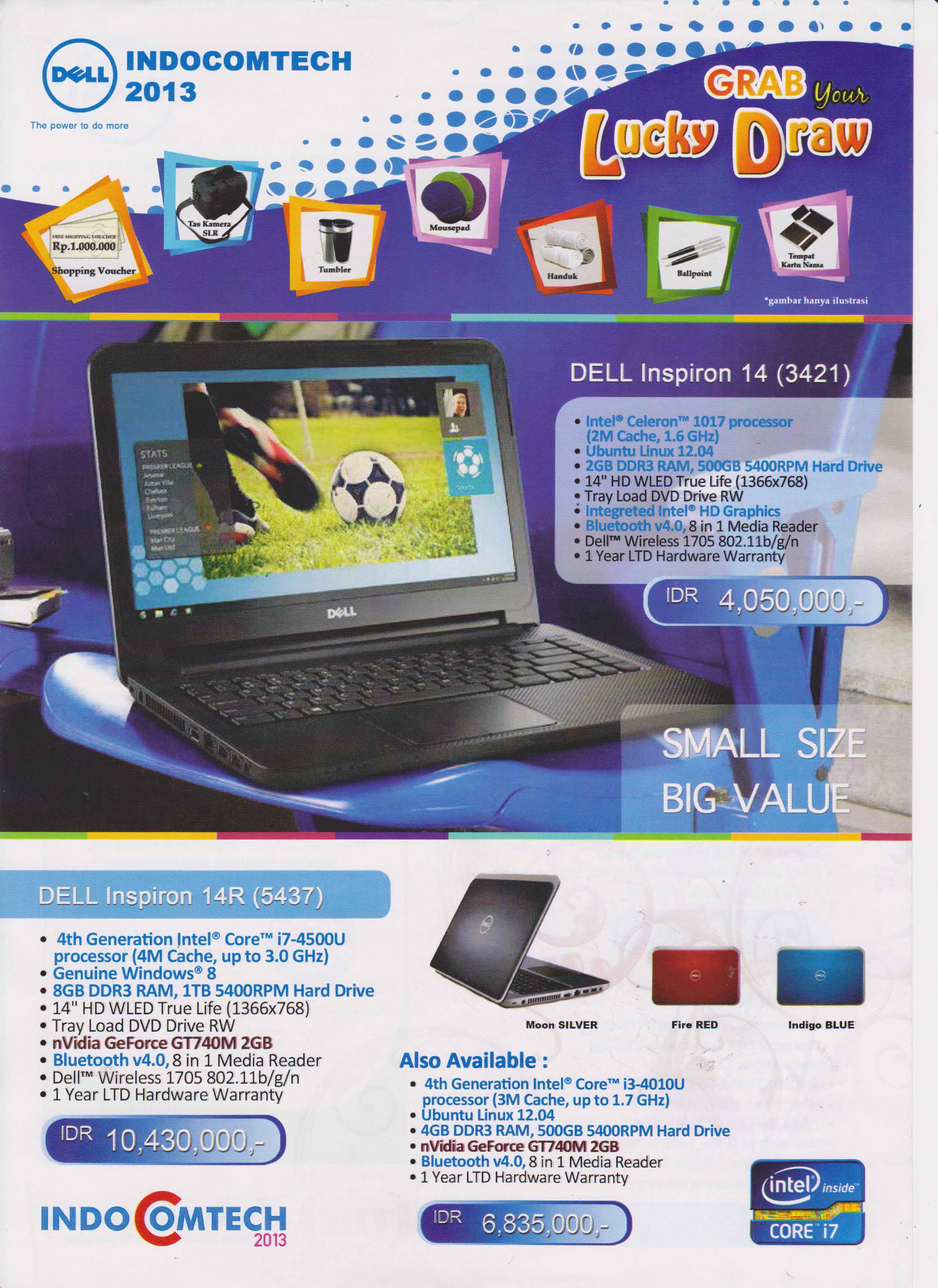 - Inspiron 14R (5437) Intel Core i3-4010U Rp 6.835.000