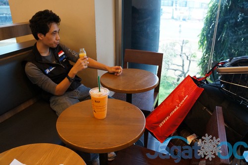 Setelah tidak tidur mempersiapkan perlengkapan yang hendak dibawa ke tempat lomba, Tim JagatOC berangkat menuju Taipei pada tanggal 16 Oktober 2013 pukul 10:00 dari Kantor JagatReview dan mengejar pesawat dengan jam keberangkatan pukul 14:20. Kami pun tiba di bandara internasional Soekarno-Hatta pada pukul 11:00, dengan selisih waktu 3 jam untuk check-in pesawat dan bagasi. Kamipun selesai melakukan check-in pesawat dan bagasi lebih awal, sekitar jam 12:20 (Biasanya kami tertahan di bagian security karena membawa sejumlah perlengkapan komputer yang ‘tidak biasa’:)). Merasa lapar dan bosan, kami pun menyantap makan siang kami pada salah satu cafe. Lengkaplah sudah dengan beberapa potong roti dan jus buah segar menemani siang kami.