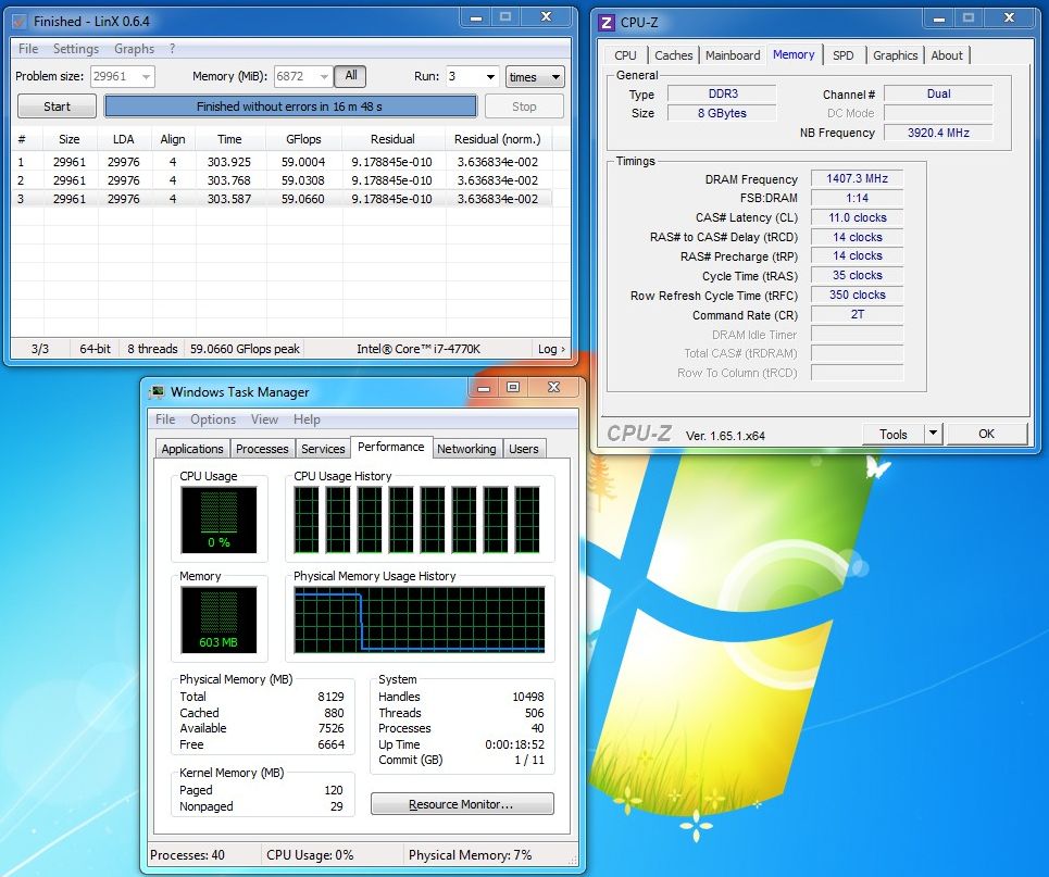 Disini, kami berusaha mengoverclock KHX Predator dengan menggunakan limitasi voltase VDimm di 1.65V, serta tidak mengubah BCLK dari CPU sekalipun, dan konfigurasi ini harus cukup stabil untuk menjalankan uji stabilitas LinX 0.6.4, sebanyak 3 (tiga) kali loop.