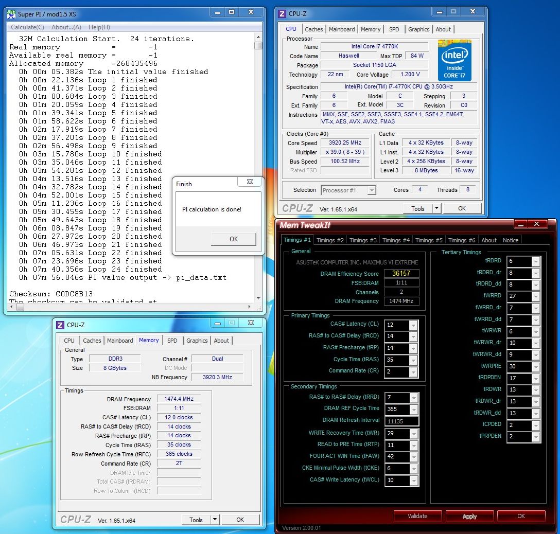 Seperti yang kami ungkap diatas, meski kami tidak bisa menjalankan kecepatan 1466Mhz(DDR3-2933Mhz) pada uji LinX, memori ini masih cukup stabil di 2933MHz CL12-14-14-35 2T dengan VDimm 1.75V saat menjalankan benchmark SuperPi 32M :